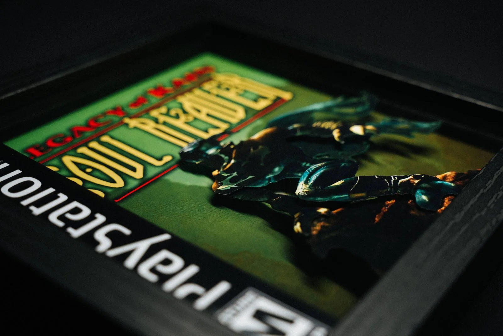 Cada unidad está cuidadosamente elaborada a mano con materiales de alta calidad, logrando un efecto de profundidad que convierte cada pieza en un ejemplar único. Este shadowbox no solo es un elemento decorativo para fans de Soul Reaver, sino también una pieza imprescindible de colección para los amantes de los videojuegos retro y la nostalgia de PS1.